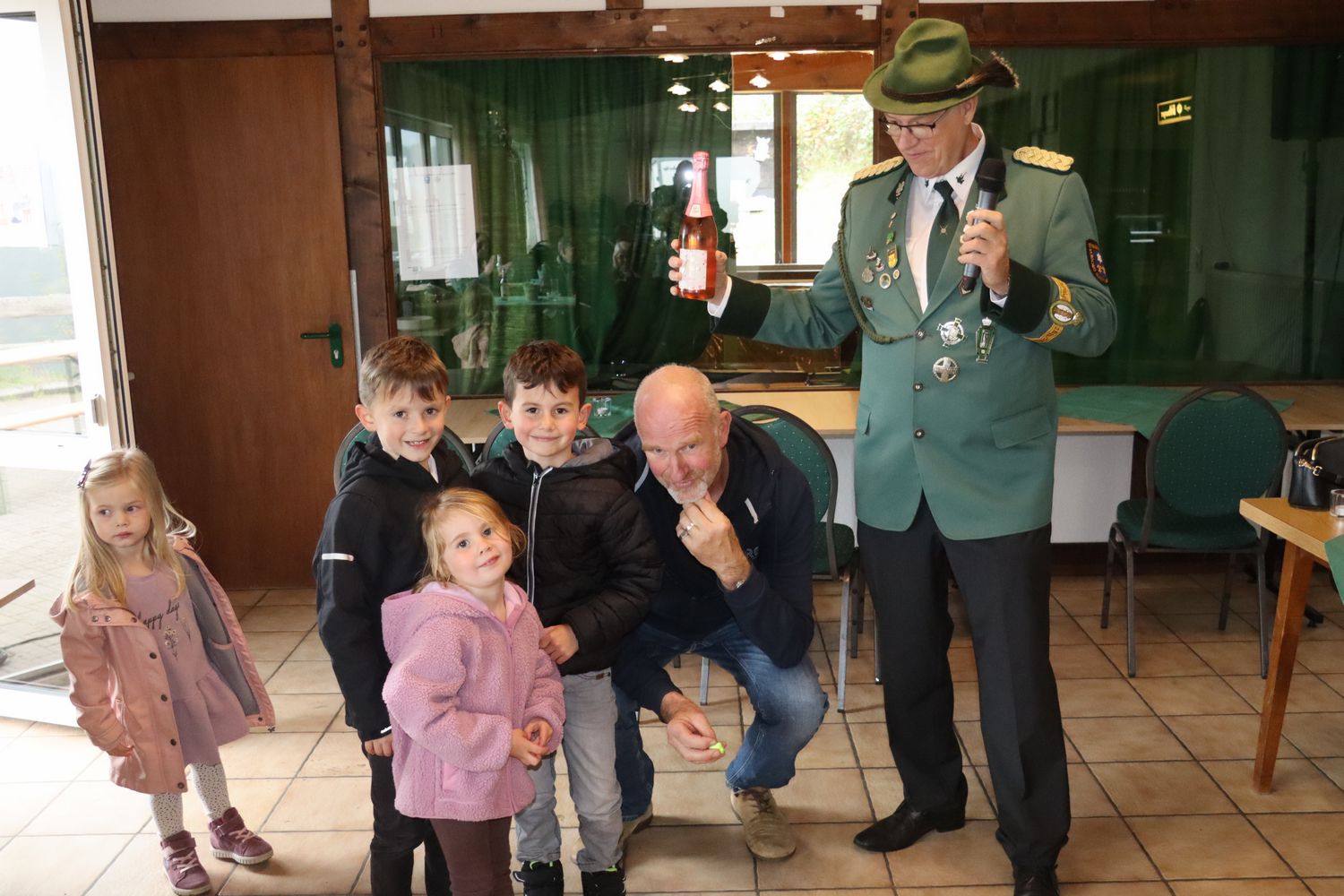 Auch der rechte Flügel wird von Chrisoph abgeschossen. Er lässt sich von den Kleinsten feiern. Stifter des Loses war Patrick Ademes. Er hat 20,- Euro gewonnen. |